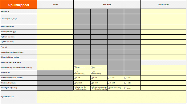 Een sjabloon voor een spuitrapport vind je terug in de bijlagen.